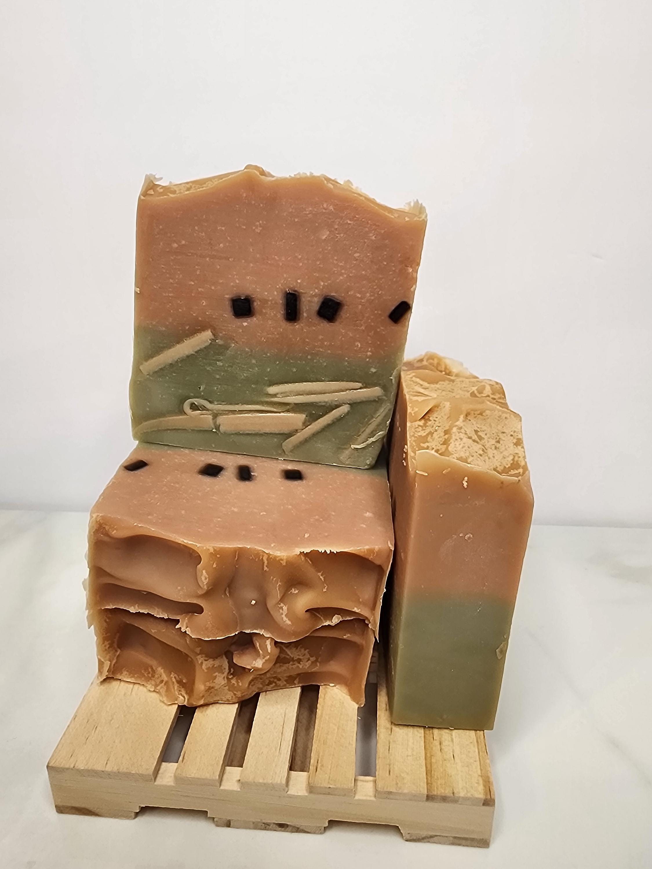 Soap Ingredients: Olive Oil, Coconut Milk, Shea Butter, Coconut Oil, Mango Butter, Avocado Oil, Castor Oil, Fragrance and Mica